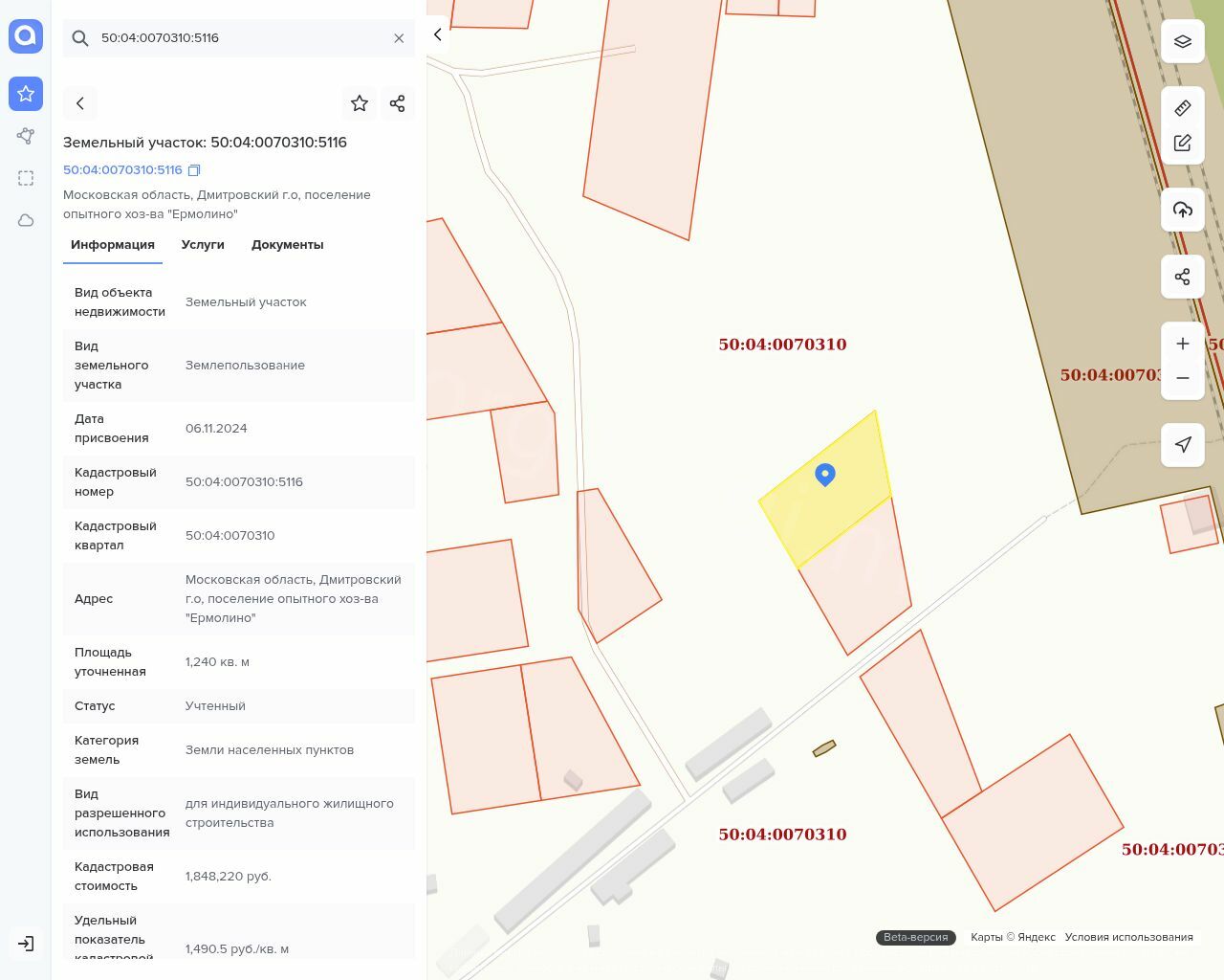 Продажа земельного участка 1 240 кв.м. для ИЖС в Дмитровском м.о. (КН 50:04:0070310:5116)