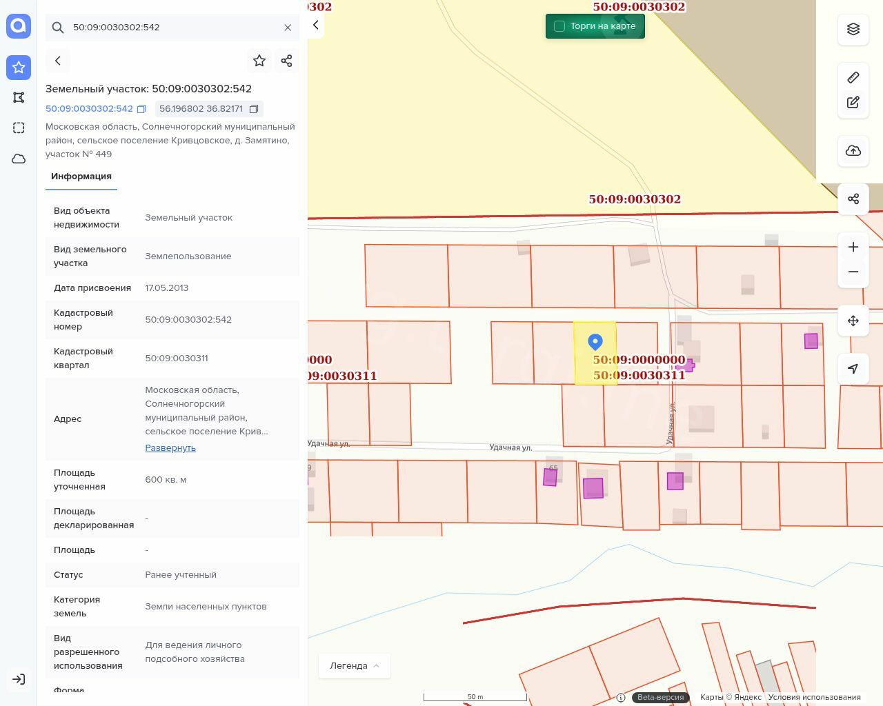 Земельный участок, площадь 600 кв.м., назначение: Для ведения личного подсобного хозяйства. Кадастровый номер: 50:09:0030302:542