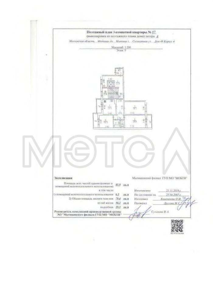Квартира, Кадастровый номер: 50:12:0101401:2289, Общая площадь 79,4 кв.м. Кол-во комнат: 3. Этаж: 5