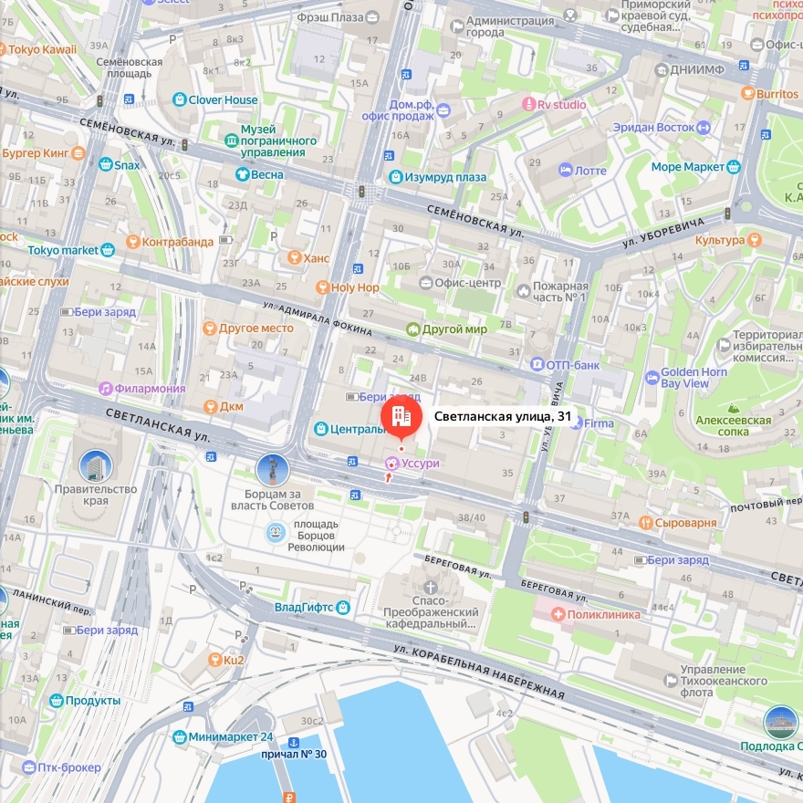 Адрес: г. Владивосток, ул. Светланская, д. 31, кв. 2а