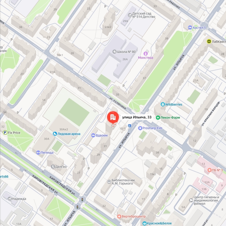 Адрес: Свердловская область, г. Екатеринбург, ул. Ильича, д. 33, кв.80