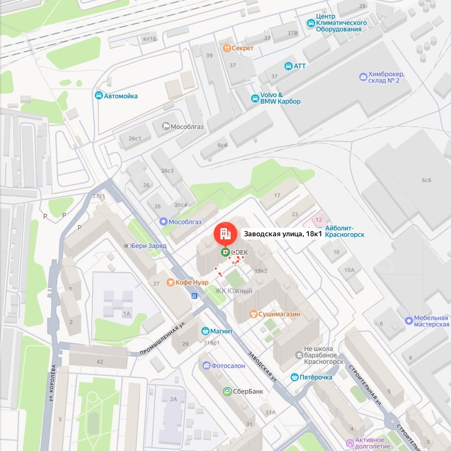 Адрес: Московская обл., г. Красногорск, Заводская ул., д. 18, корп. 1, кв. 64